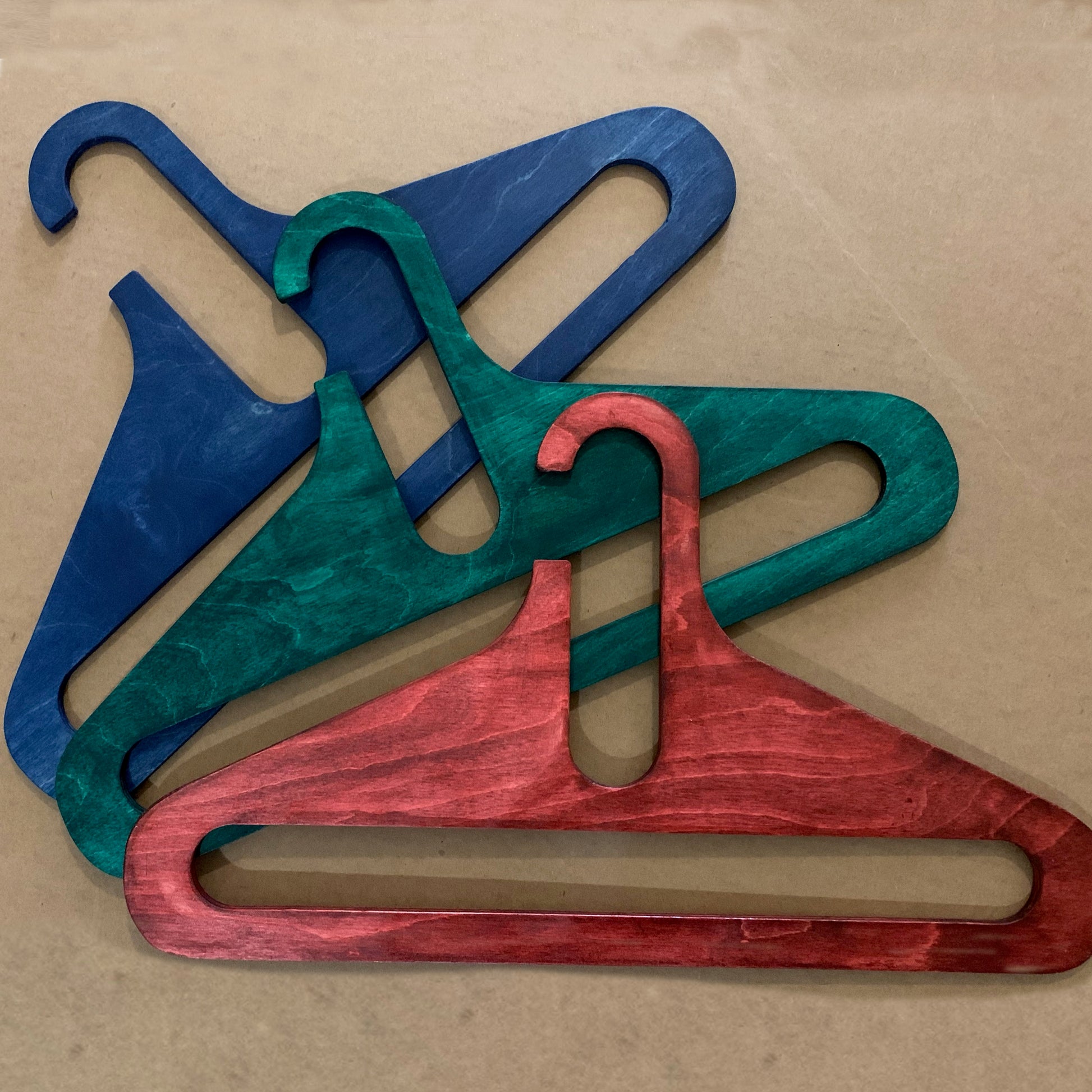 Made with cabinet grade 1/4" birch plywood finished with a soft matte wax. These hangers are space saving and cool. Made after a 60's Danish design. The finish brings out a lovely pattern of wood grain.