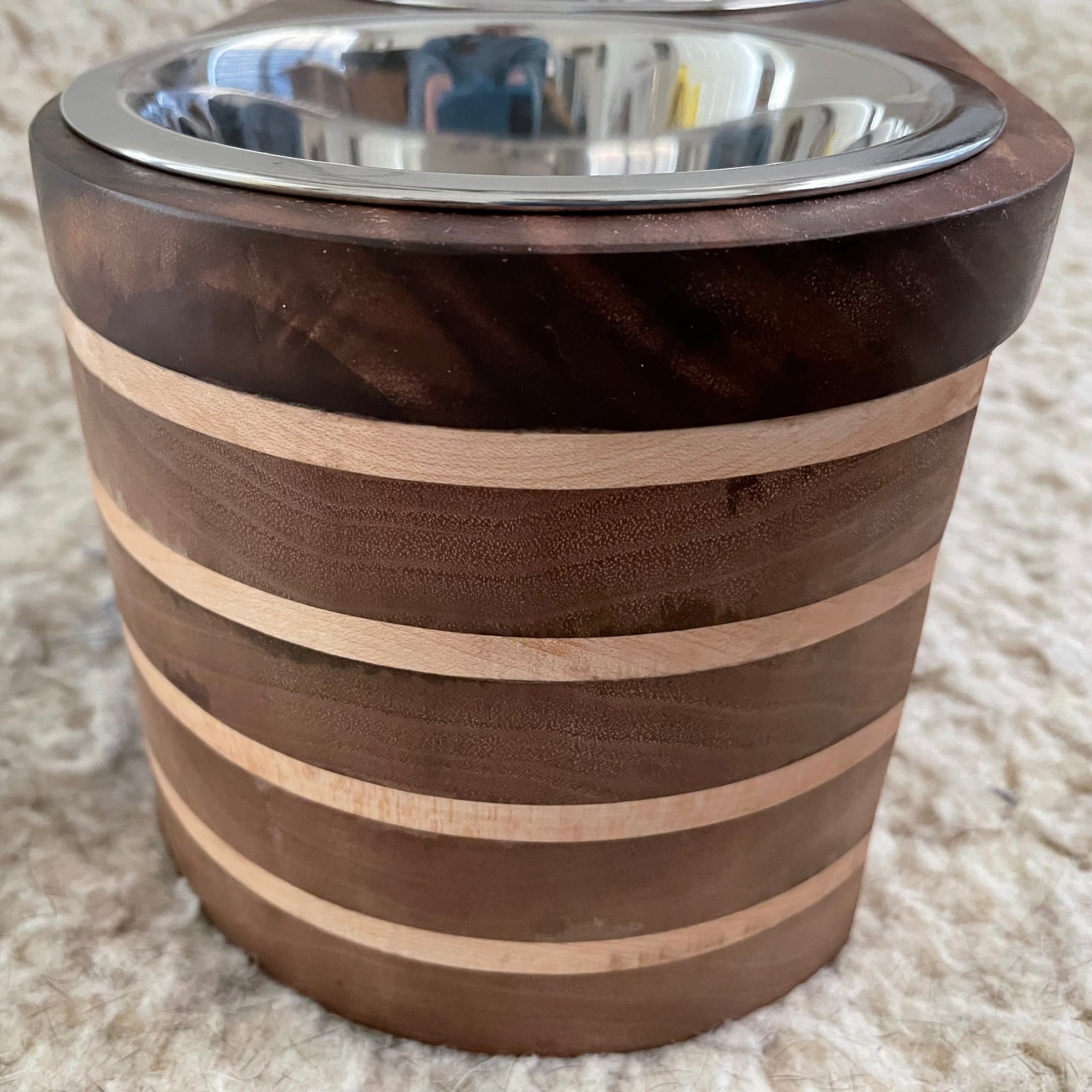Beautifully handcrafted from rich walnut and maple, this small raised feeder is the perfect blend of function and style for your little dogs and cats.